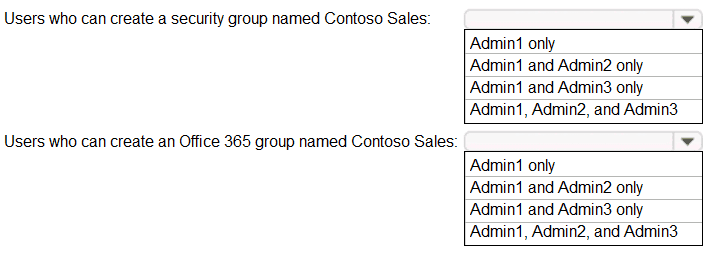 Which users can create a group named Contoso Sales in contoso.com? To answer, select