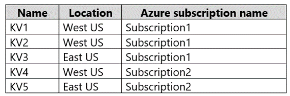 You have the Azure key vaults shown in the following table.