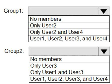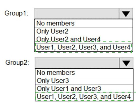 What is the membership of Group1 and Group2? To answer, select the appropriate options