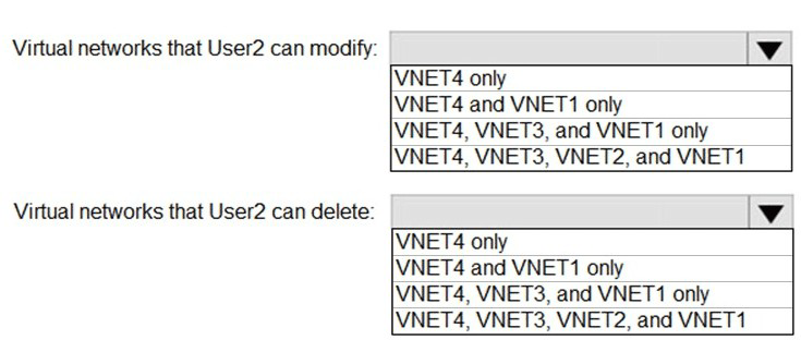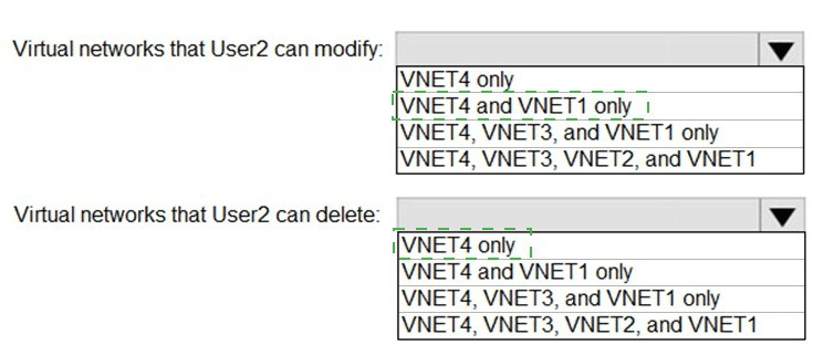 Which virtual networks in Sub1 can User2 modify and delete in their current state? To