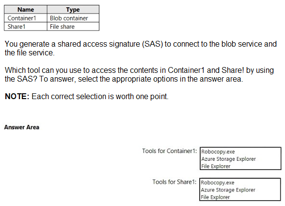You have an Azure subscription named Sub1. Sub1 has an Azure Storage account named Storage1 that contains the resources shown in the following table.