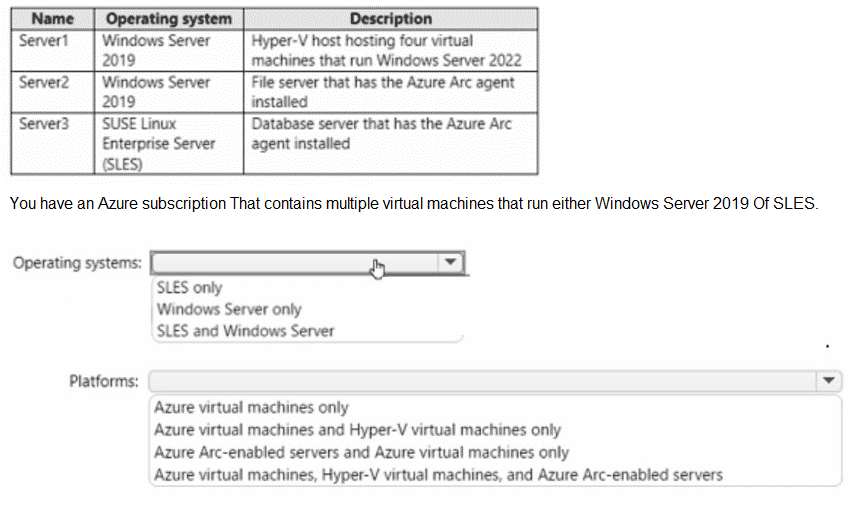 You have an Azure subscription that contains the virtual machines shown in the following table.