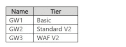 You have an Azure subscription that contains the application gateways shown in the