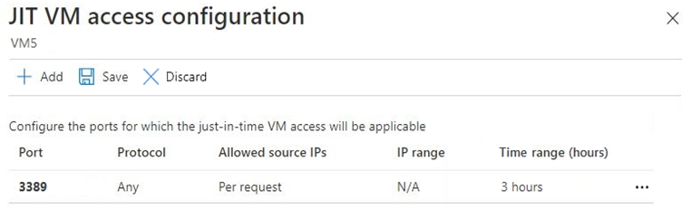 VM5 has just in time (JIT) VM access configured as shown in the following exhibit.