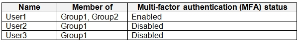 You have an Azure Active Directory (Azure AD) tenant that contains the users shown in the