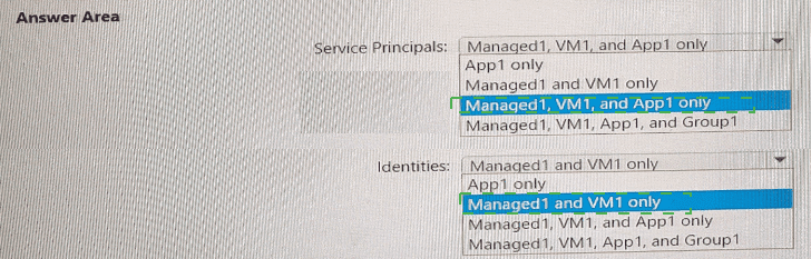 assigned the Reader role for RG1. What should you identify? To answer, select the