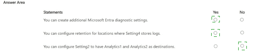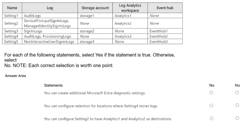For Microsoft Entra ID, you create the diagnostic settings shown in the following table.