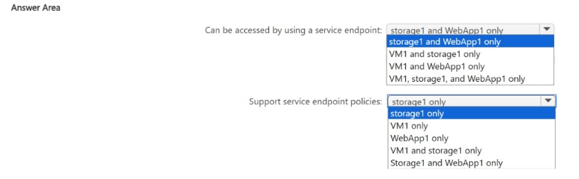 support service endpoint policies? To answer, select the appropriate options in the answer
