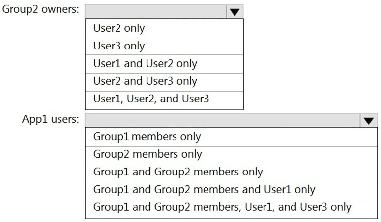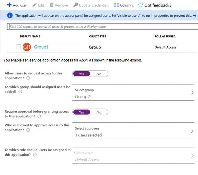 The user and group settings for App1 are configured as shown in the following exhibit.