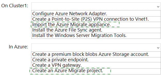 What should you do on Cluster1 and in Azure before you perform the migration? To