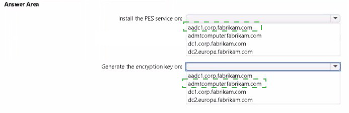 dc2.europe.fabrikam.com: Similarly, this is a domain controller for the europe.fabrikam.com domain. Installing PES on domain controllers is not supported and violates security best practices.
