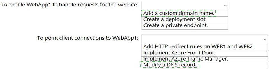 To enable WebApp1 to handle requests for the website: Add a custom domain name: