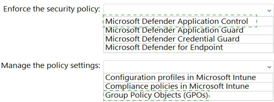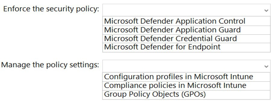 manage the policy settings? To answer, select the appropriate options in the answer area.