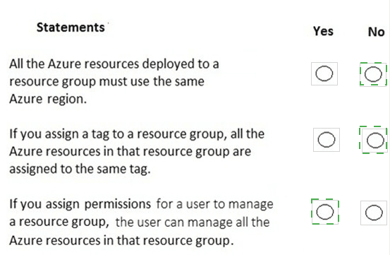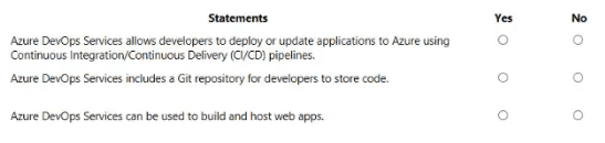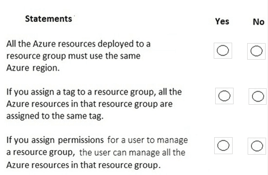For each of the following statements, select Yes if the statement is true, Otherwise, select