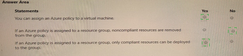 If an Azure policy is assigned to a resource group, noncompliant resources are removed from the group.