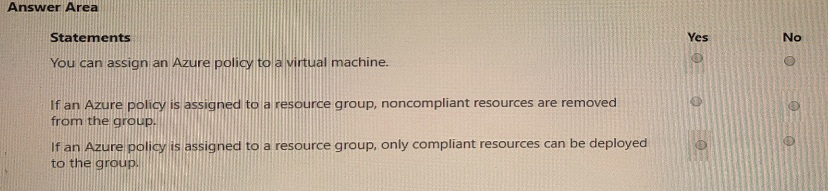 For each of the following statements, select Yes if the statement is true. Otherwise, select