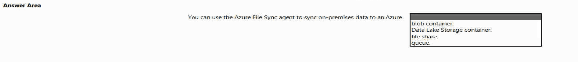 Azure Blob Storage is for unstructured object data (like images, backups, logs). While you can move data to a blob container using tools like AzCopy, the Azure File Sync agent is not designed to sync to blob containers. It works exclusively with Azure file shares.