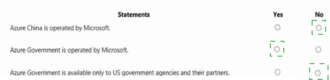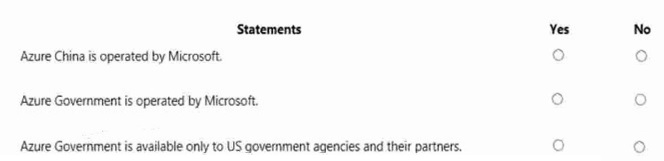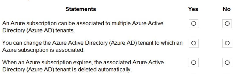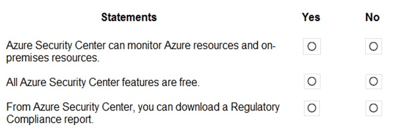 For each of the following statements, select Yes if the statement is true. Otherwise, select