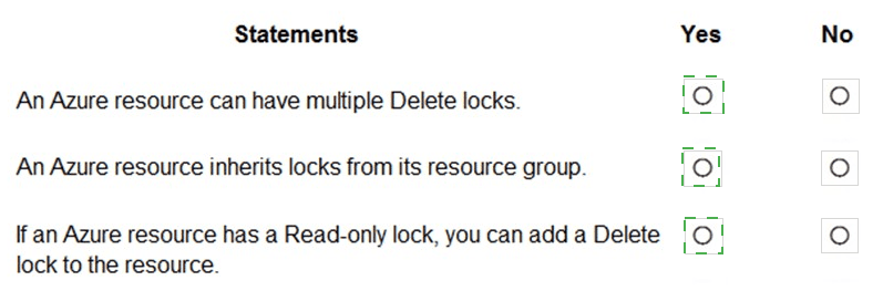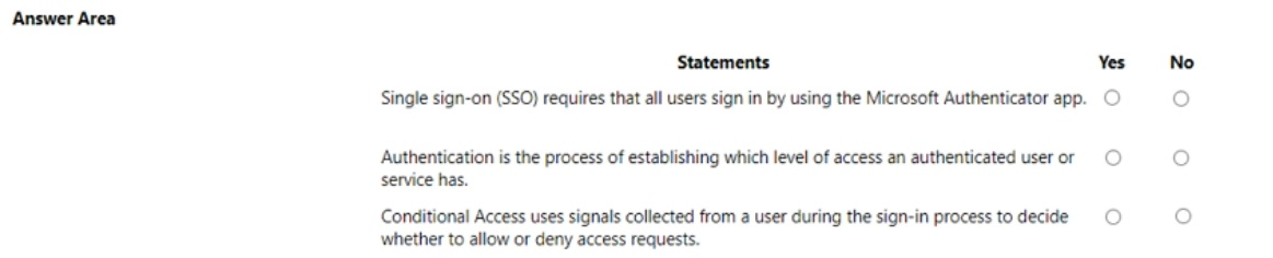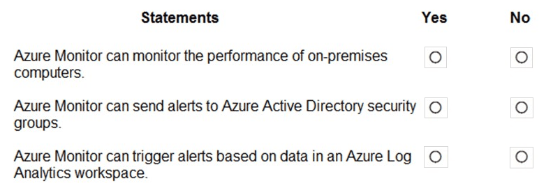 For each of the following statements, select Yes if the statement is true. Otherwise, select