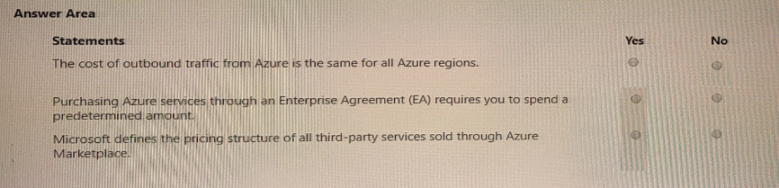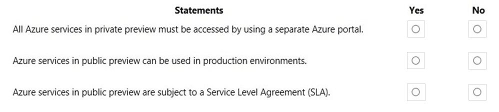 For each of the following statements, select Yes if the statement is true. Otherwise, select