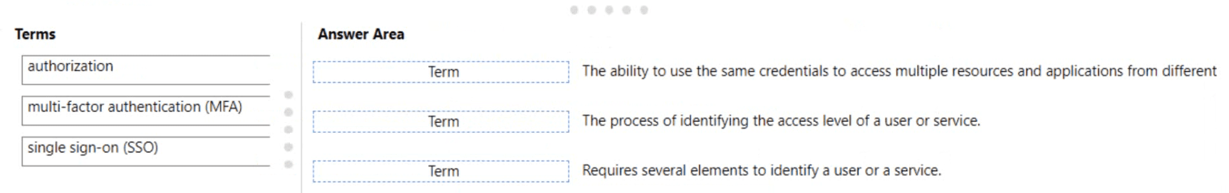 To answer, drag the appropriate term from the column on the left to its description on the