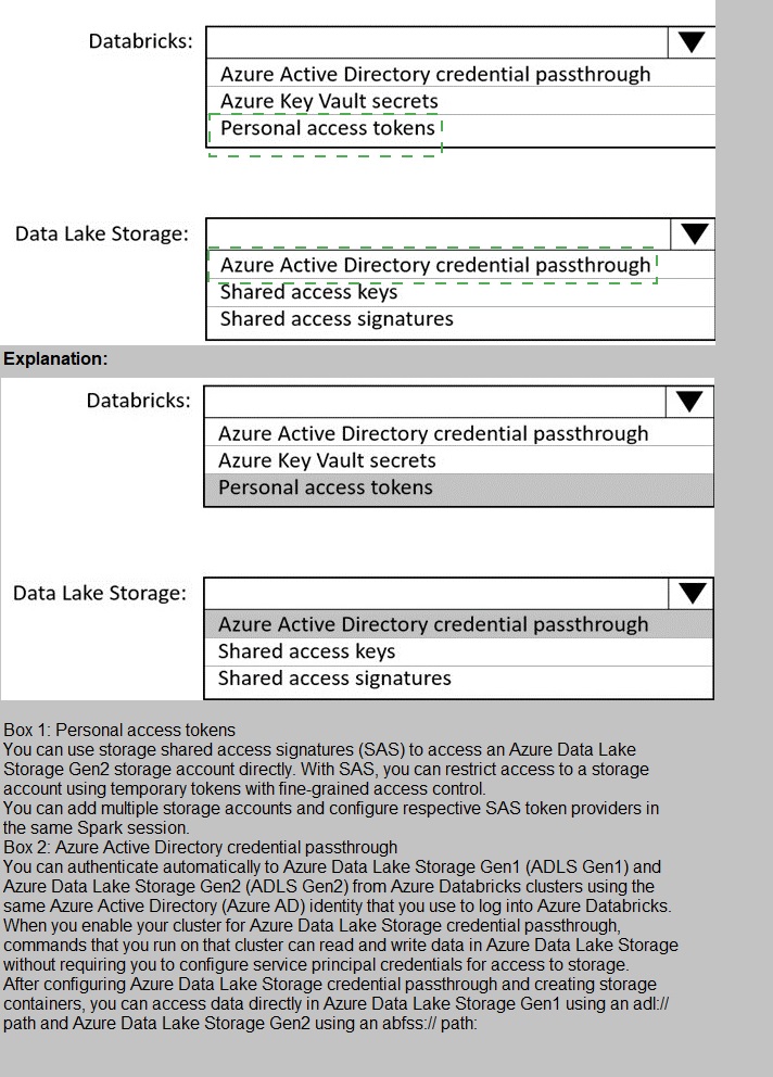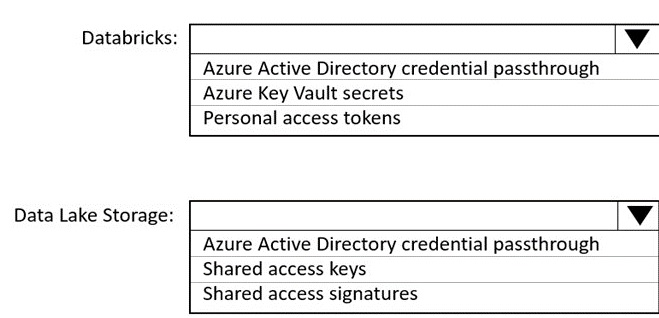 You need to recommend which authentication methods to use for Databricks and Data