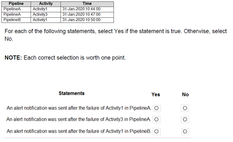 Data Factory monitoring records the failures shown in the following table.