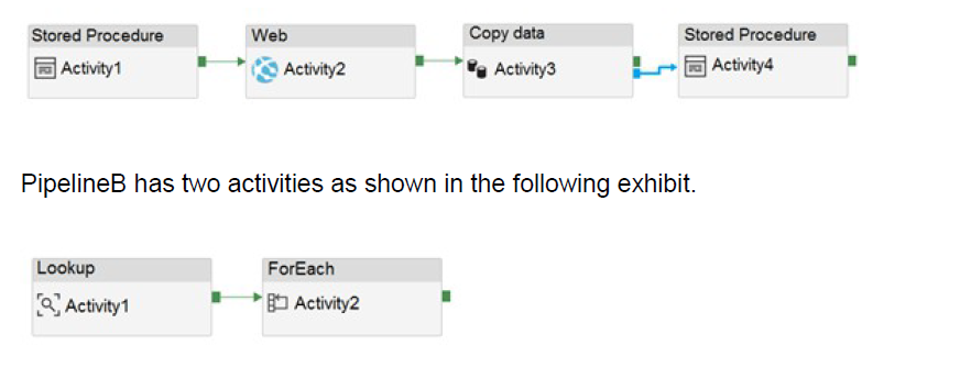 PipelineA has four activities as shown in the following exhibit.