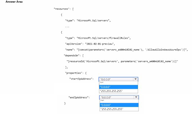 How should you complete the template? To answer, select the appropriate options in the