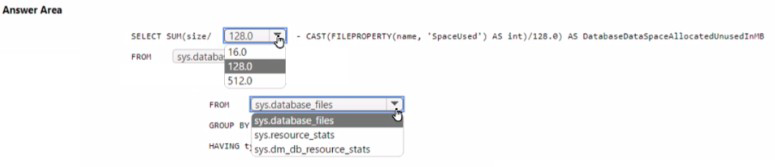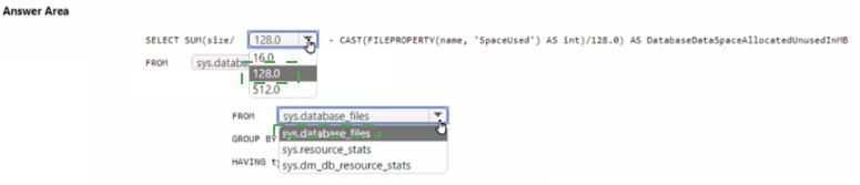 You need to identify how much unused space in megabytes was allocated to DB1.