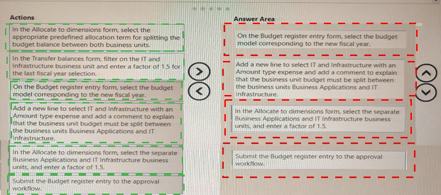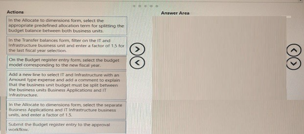 You need to create the budget for the two business units based on 1.5 Which four actions