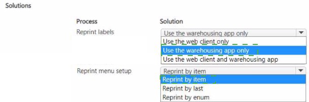 Process: Reprint labels | Solution: Use the warehousing app only | Menu Setup: Reprint by last