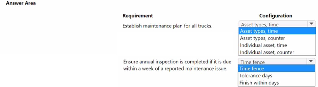 Requirement: Establish maintenance plan for all trucks | Configuration: Asset types, time