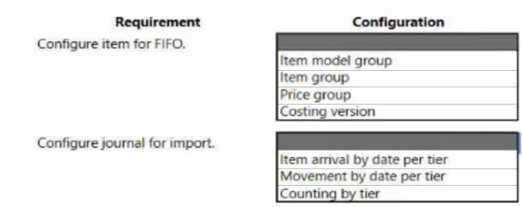 Requirement: Configure item for FIFO | Configuration: Item model group