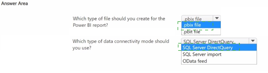 SQL Server import: Import mode loads data into the Power BI model, creating a snapshot that becomes stale over time. This does not meet the near real-time requirement because the data would only refresh on a scheduled basis, not continuously.