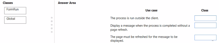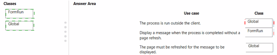 The Global class provides the runAsync method which is used to execute long-running processes on the server side, outside the client. When you need to ensure that a process continues running even if the user closes their browser or navigates away, Global.runAsync is the appropriate choice as it executes the operation asynchronously on the server tier.