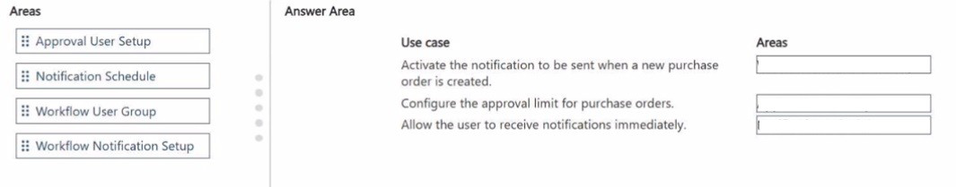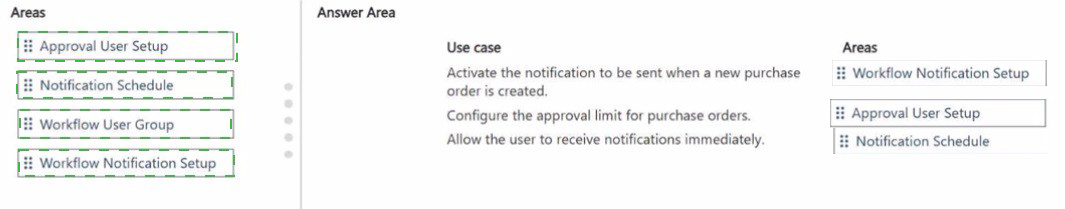 Which areas should you configure for each use case? To answer, drag the appropriate areas to the correct use cases. Each area may be used once, more than once, or not at all.