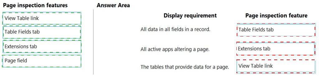 Reference: Microsoft Learn – "Page Inspection" – Table Fields Tab