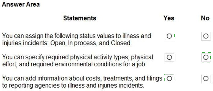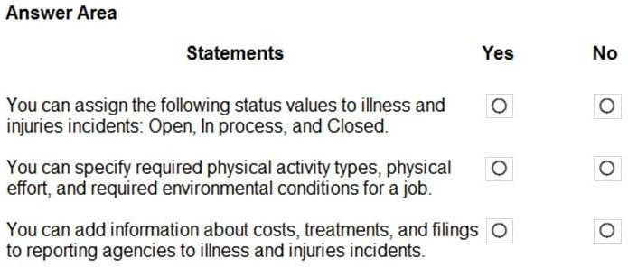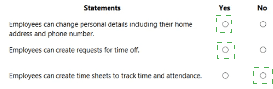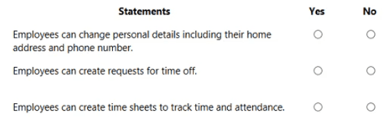 A company wants to understand the self-service capabilities of Dynamics 365 Human Resources. Instructions: For each of the following statements, select Yes if the statement is true. Otherwise, select No.