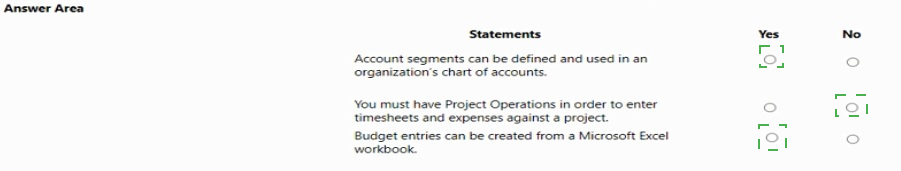 No. Project Operations is NOT required for timesheets/expenses against a project. This is false. The Project management and accounting (PMA) module is a core part of Dynamics 365 Finance. It allows employees to enter timesheets and expenses directly against projects. Dynamics 365 Project Operations is a separate, more advanced application for project-centric businesses that includes this functionality, but it is not a prerequisite; the capability exists natively within Finance.