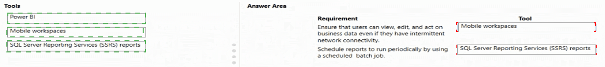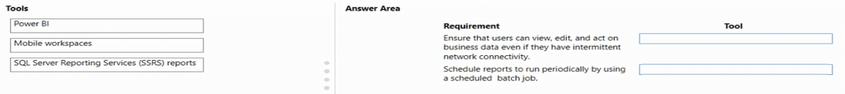 What should you recommend? To answer, drag the appropriate tools to the correct requirements. Each tool may be used once, more than once, or not at all. You may need to drag the split bar between panes or scroll to view content.