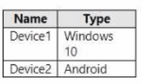 You have a Microsoft 365 subscription that contains the devices shown in the following
