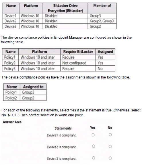 You have three devices enrolled in Microsoft Endpoint Manager as shown in the following table.