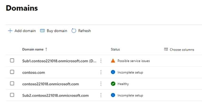 You have a Microsoft 365 subscription that contains the domains shown in the following exhibit.