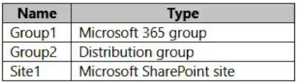 You have a Microsoft 365 tenant that contains the groups shown in the following table.