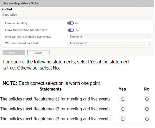 Contoso has a global live events policy configured as shown in the following exhibit.