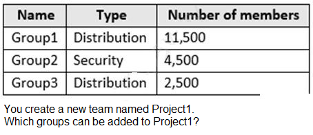 You have a Microsoft 365 subscription that uses Microsoft Teams and contains the groups shown in the following table.