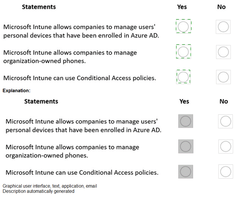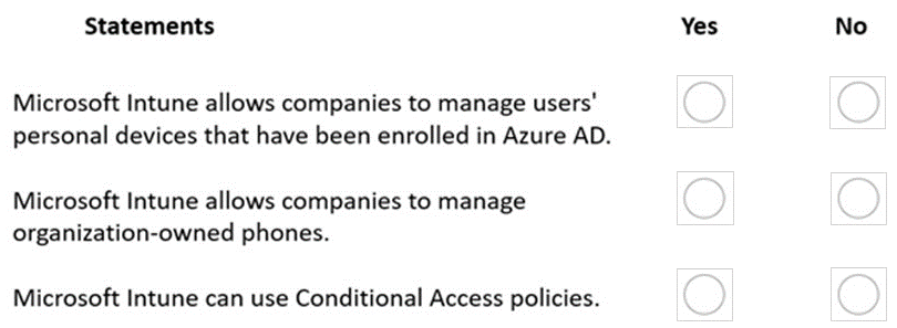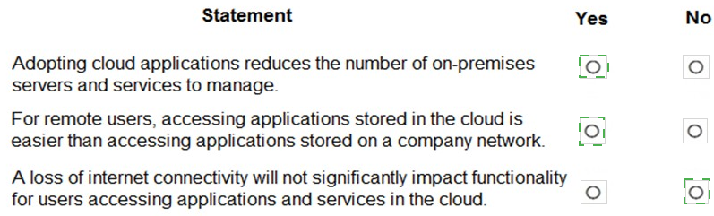 For each of the following statements, select Yes if the statement is true. Otherwise, select