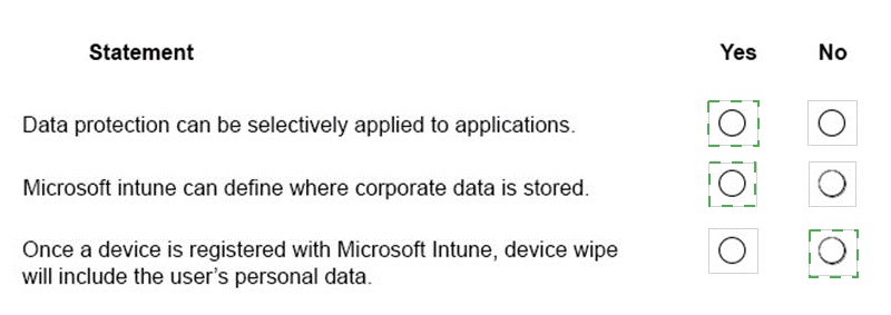 Instructions: For each of the following statements, select Yes if the statement is true.