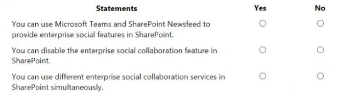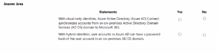 For each of the following statements, select Yes if the statement is true. Otherwise, select